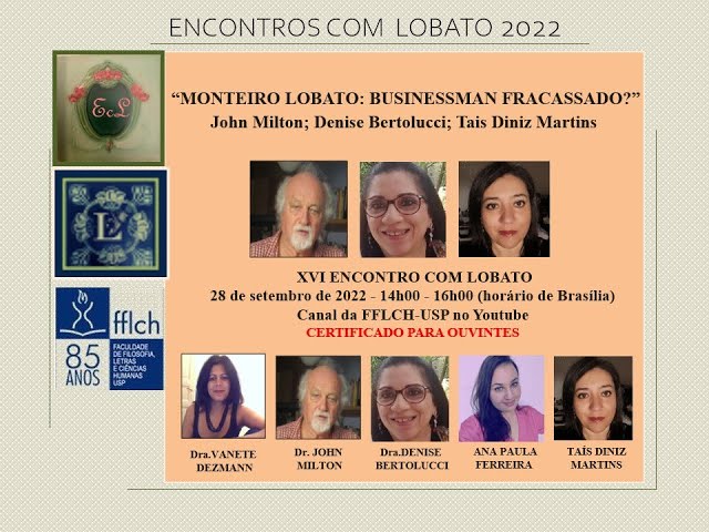 Encontros com Lobato 2022 XII Encontro com Lobato - 23/03/2020 XII Encontro com Lobato - 27/04/2022 XIII Encontro com Lobato - 25/05/2022 XIV Encontro com Lobato - 22/06/2022 XV Encontro com Lobato - 31/08/2022 XVI Encontro com Lobato - 28/09/2022